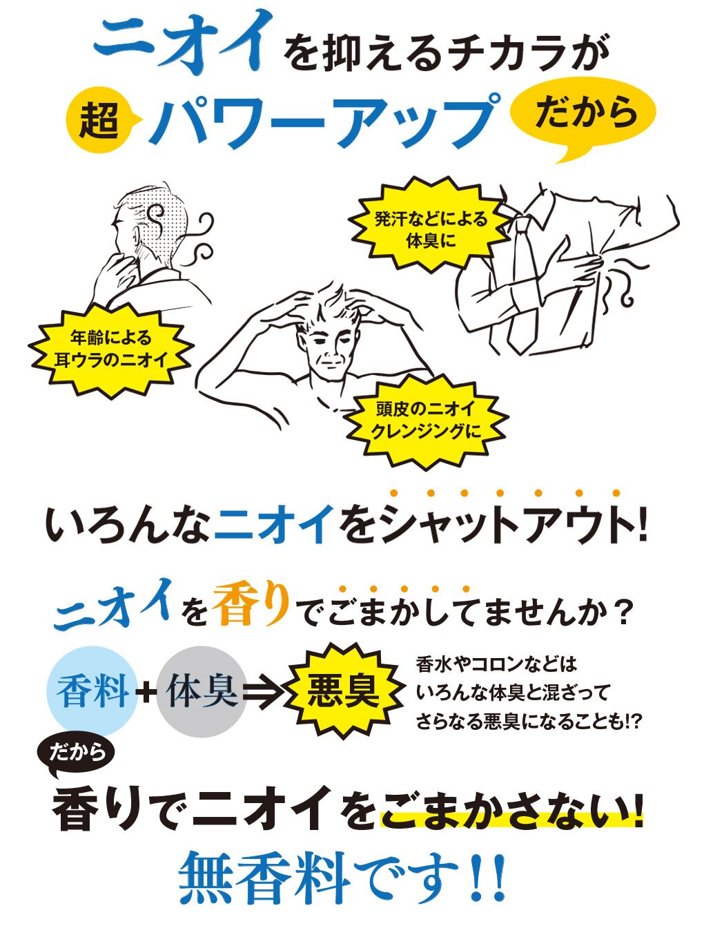 無香料の耳ウラシュッシュは、香りをつけるのではなく加齢臭の原因となる皮脂を拭き取り耳裏や後頭部をあっという間におそうじ出来る商品です。